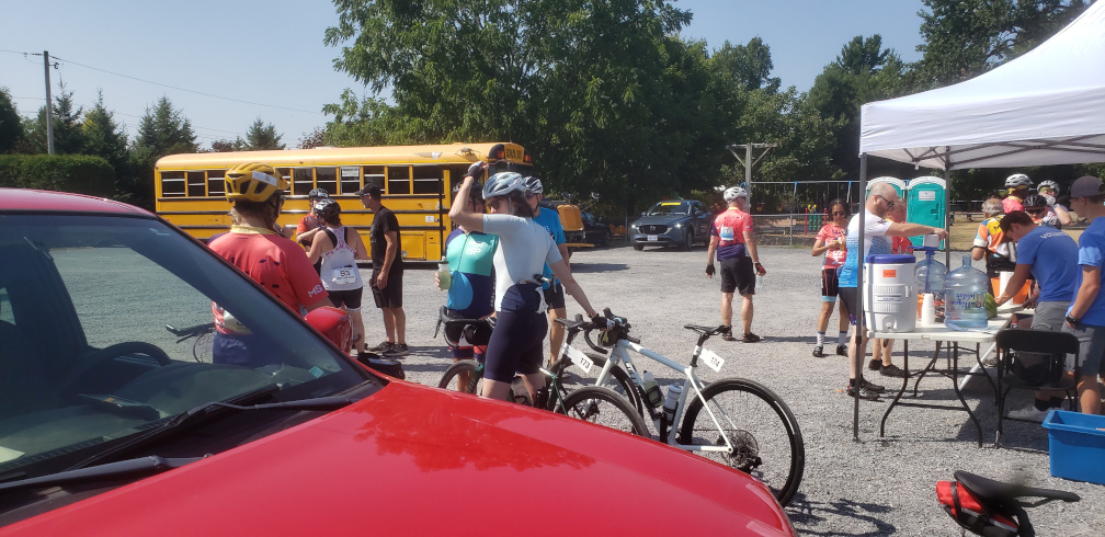 A special thanks goes out to Doug (VE3HTR) and Roger (VA3GBV) who relocated the VE3SVC repeater from Cornwall to Bonville to provide a single repeater solution to support the event. They also arranged to link Winchester (VE3NDC) and Bonville (VE3PGC) to provide a backup. There were 4 mobile radio operators that rode with support and medical vehicles and the motorcycle patrol, all beaconing on APRS. Two additional vehicles were kitted with unmanned APRS beacons. Thanks go to Norm (VE3LC) and Jeff (VA3PEW) for providing that equipment, installing it and providing other valued support. And, as always, we are very grateful to Nicole, VE3GIQ, from OVMRC, for organising the ham radio aspects and volunteers, as she does every year with such skill and good humour.